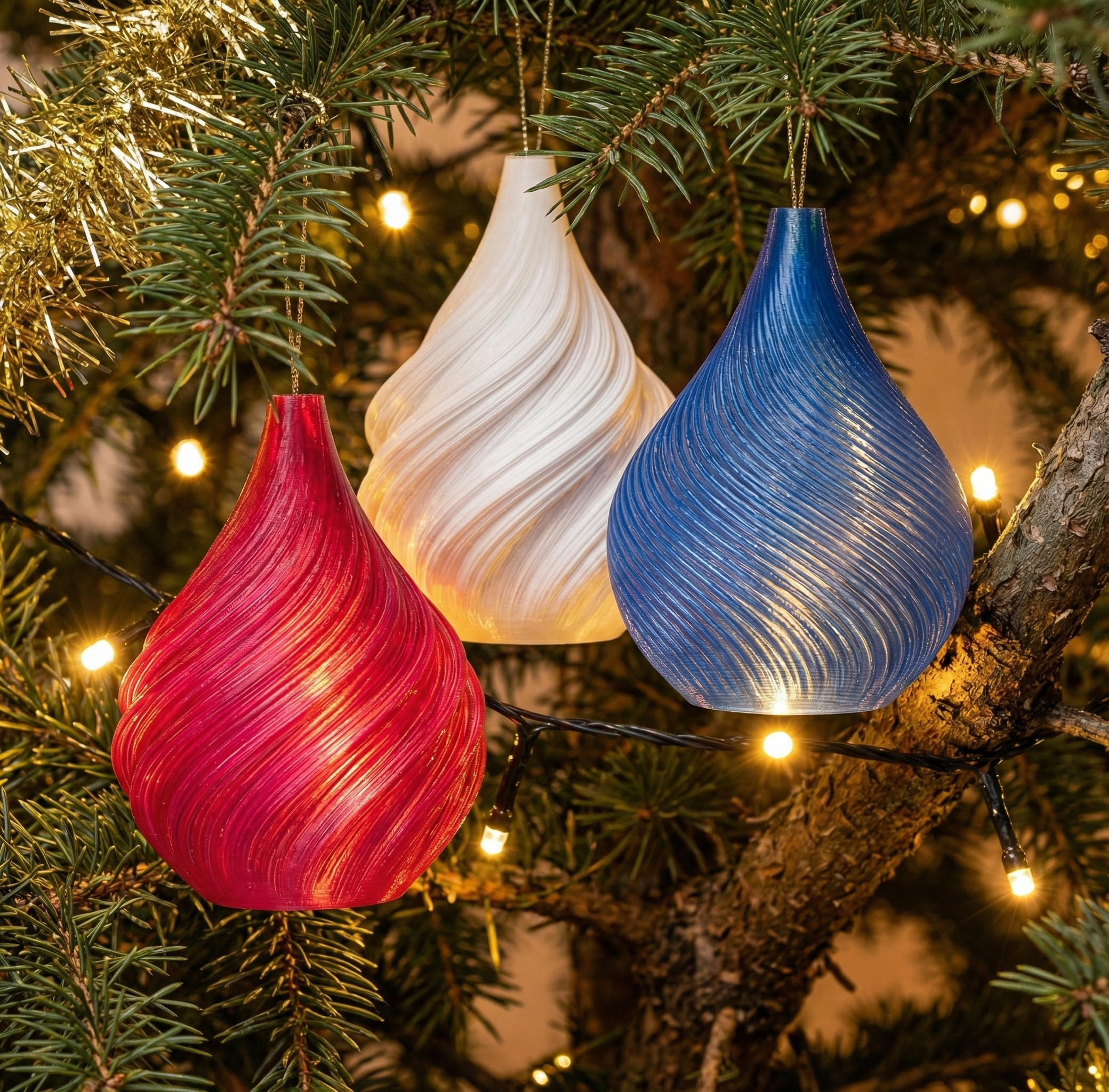 Dale a tu árbol un toque moderno y escultórico con estos elegantes Adornos TwistDrop, diseñados con líneas espirales fluidas.