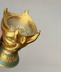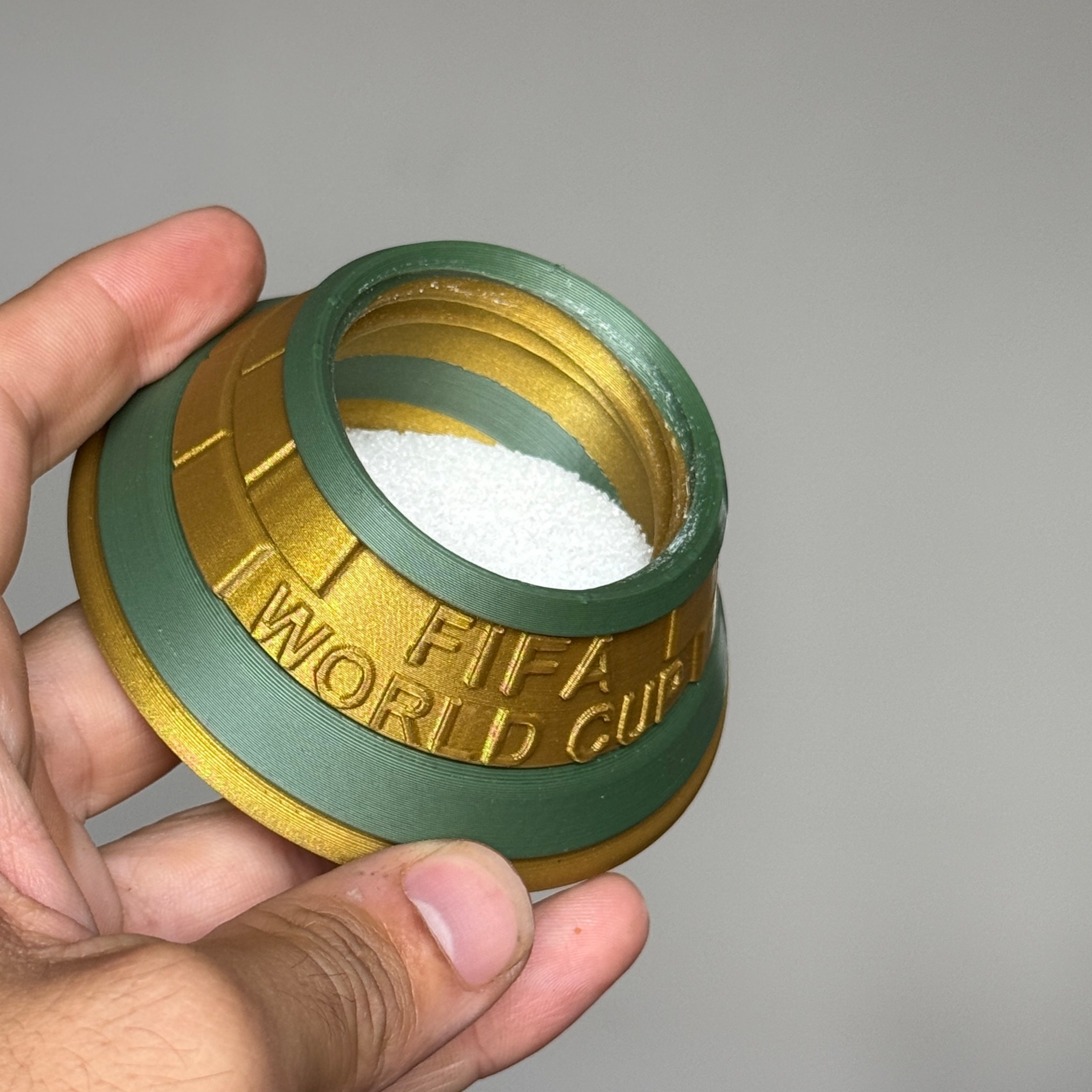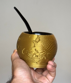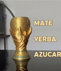 Este mate inspirado en la Copa del Mundo está compuesto por 3 piezas que permiten llevar todo lo necesario en un solo lugar: mate, yerba y azúcar.
