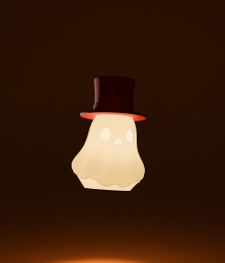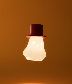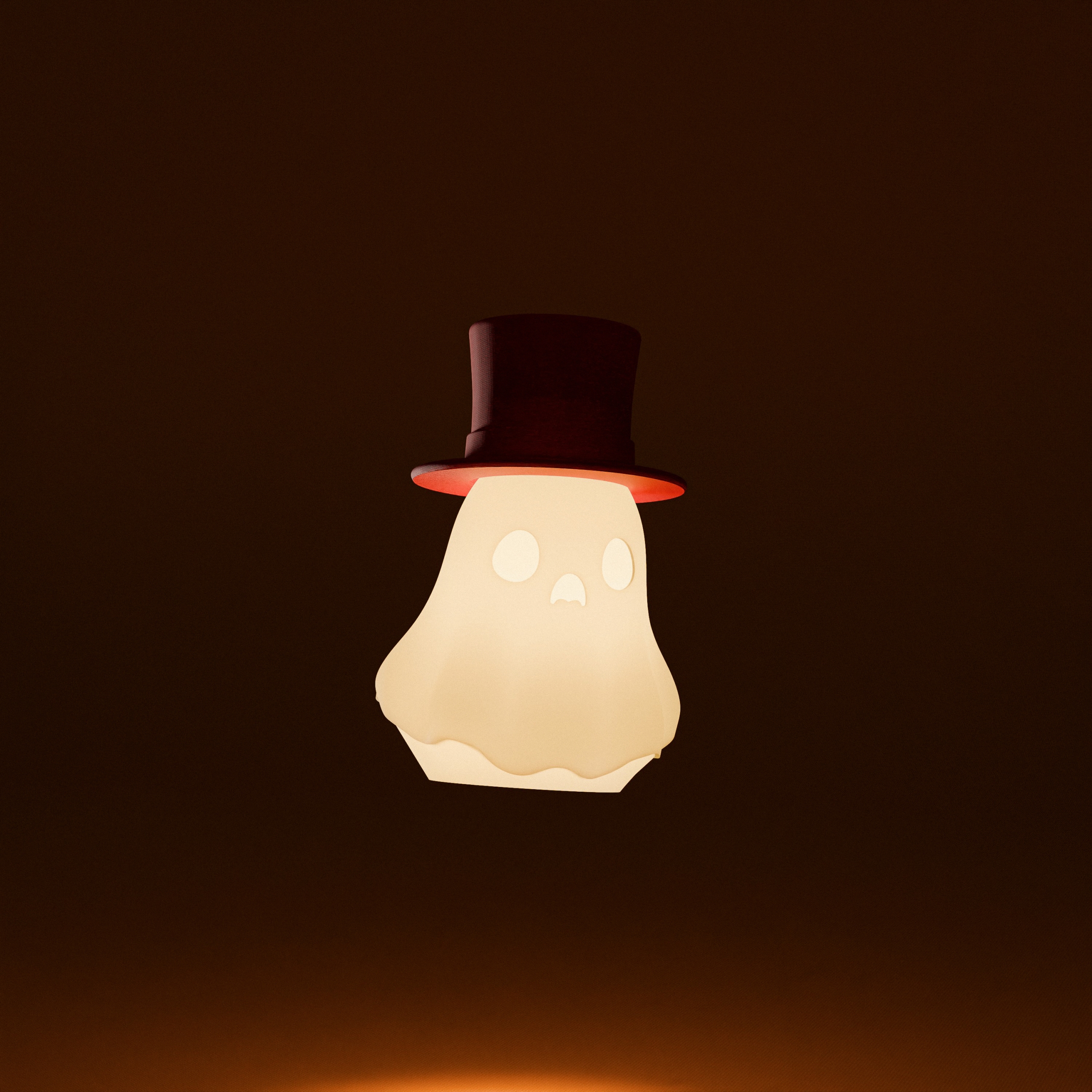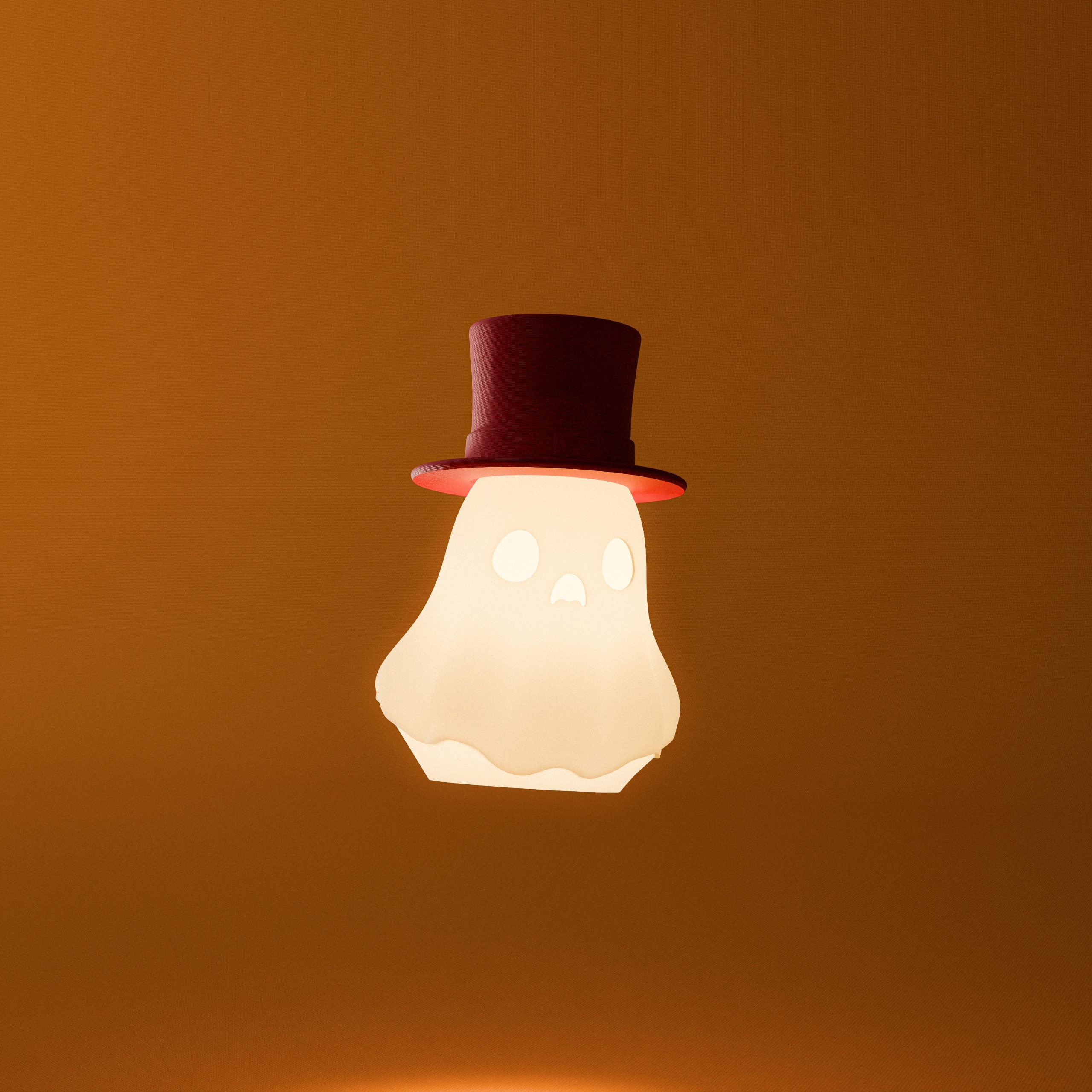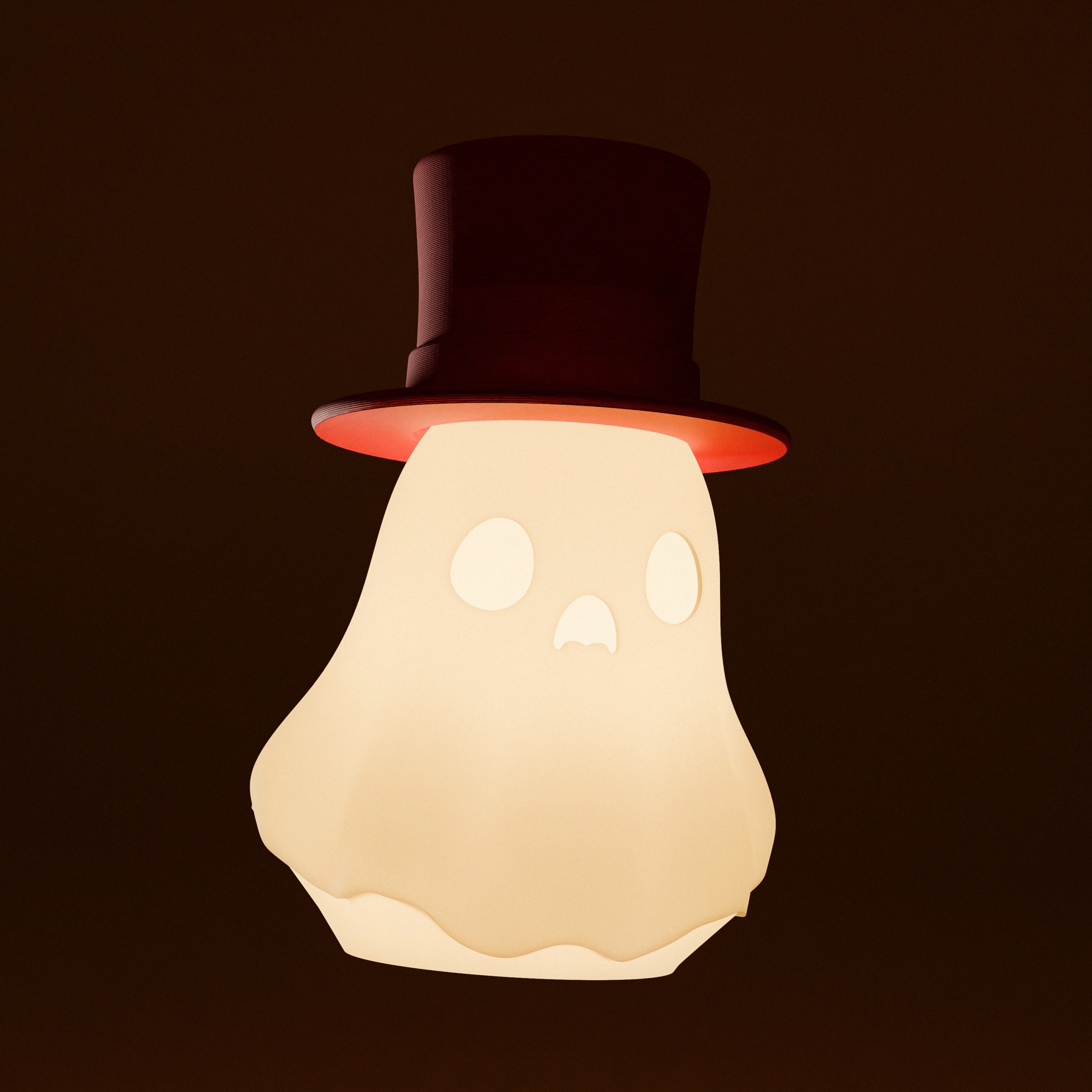 Un set personalizable de fantasmas impresos en 3D con distintos sombreros y expresiones, diseñado para velas LED. Ideal para sumar un toque lúdico y acogedor a tu decoración de Halloween.